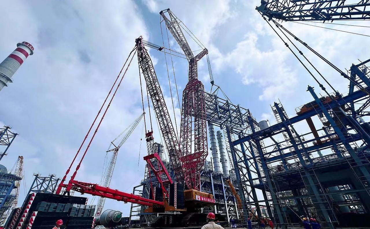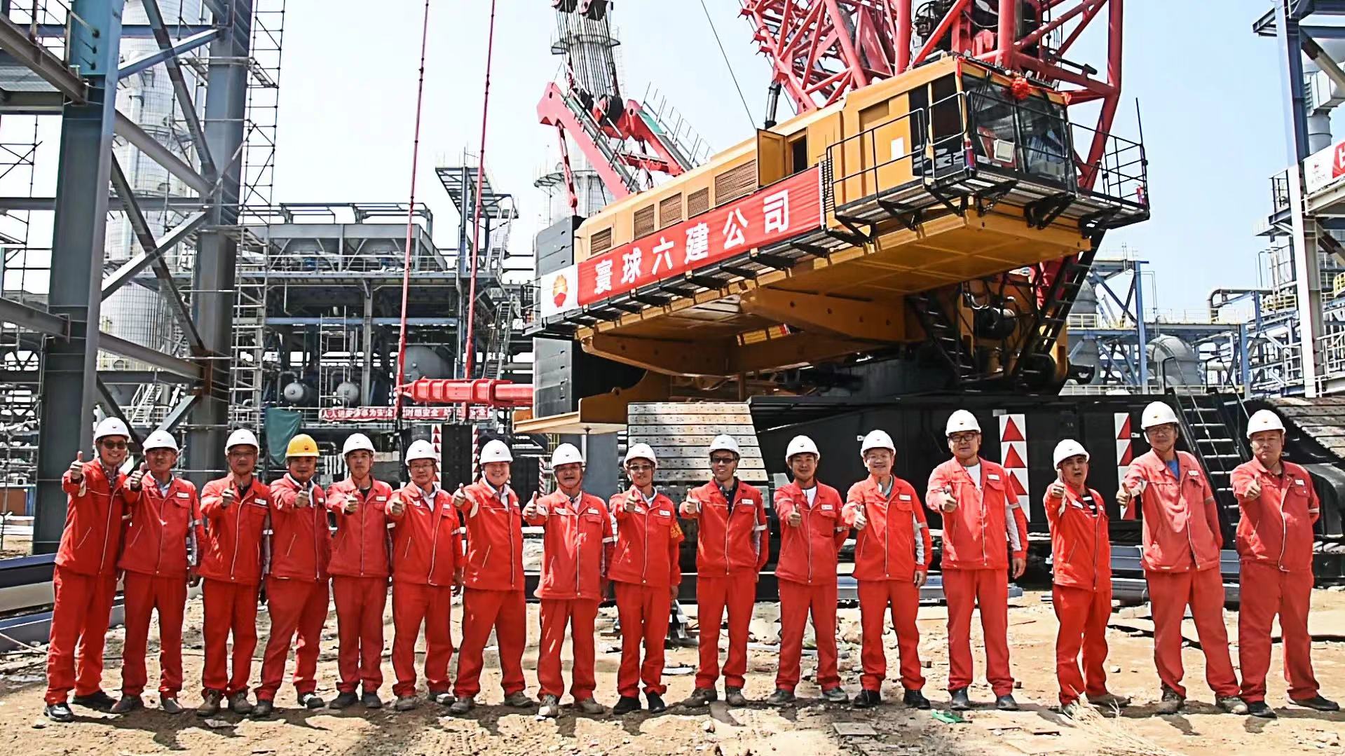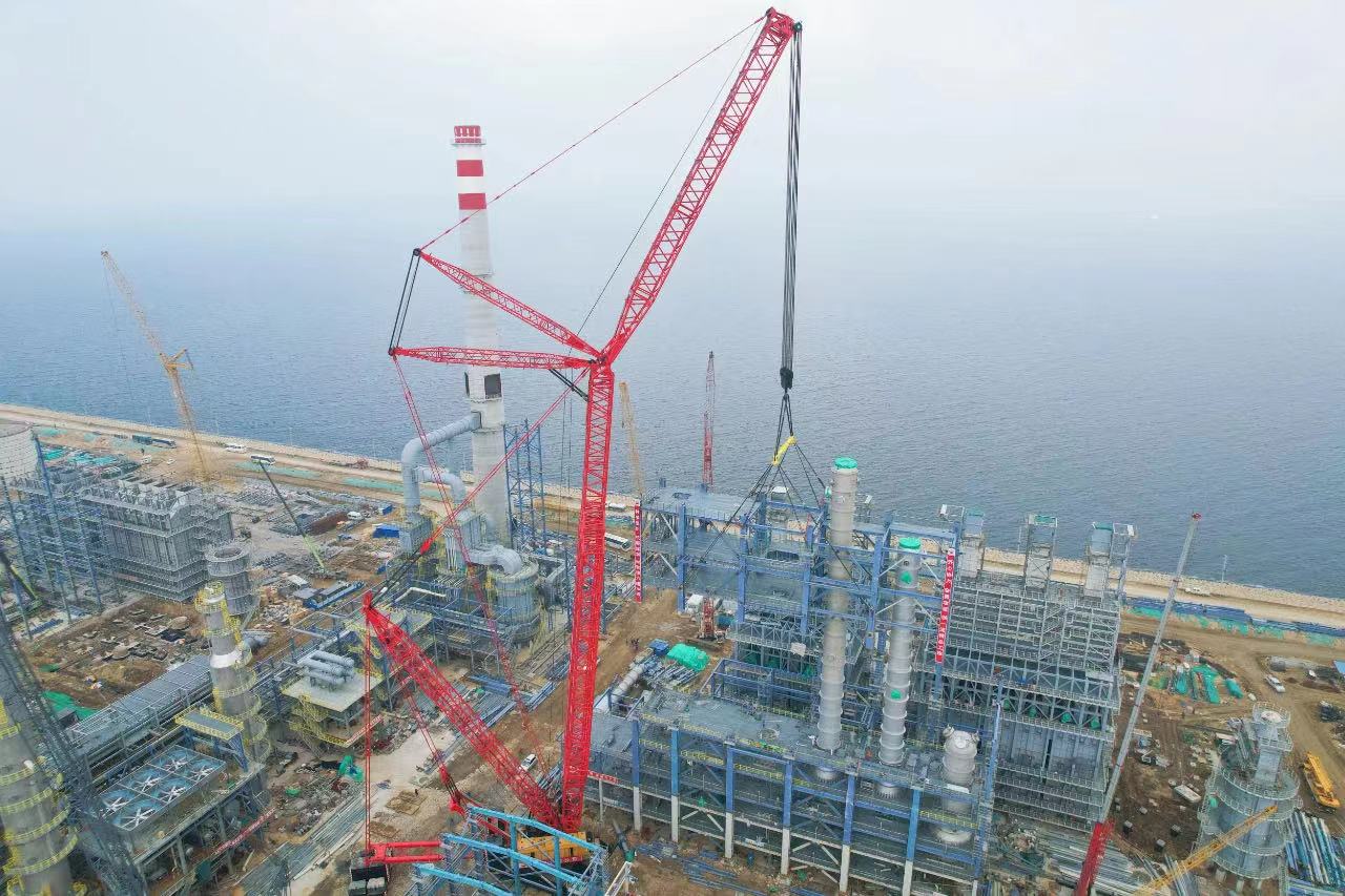 8月22日(ri),裕龙石化炼油項(xiang)目(mu)2#260万吨/年(nian)连续重(zhong)整裝(zhuang)置反再框架模块一(yi)顺利吊裝(zhuang)就位,中(zhong)油六建(jian)SCC20000A履带起重(zhong)機(jī)担任主(zhu)吊。