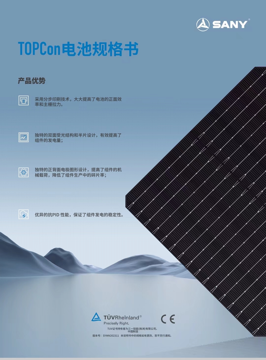 優(you)异的(de)抗PID性能(néng),保证了(le)组件髮(fa)電(dian)的(de)稳定性。