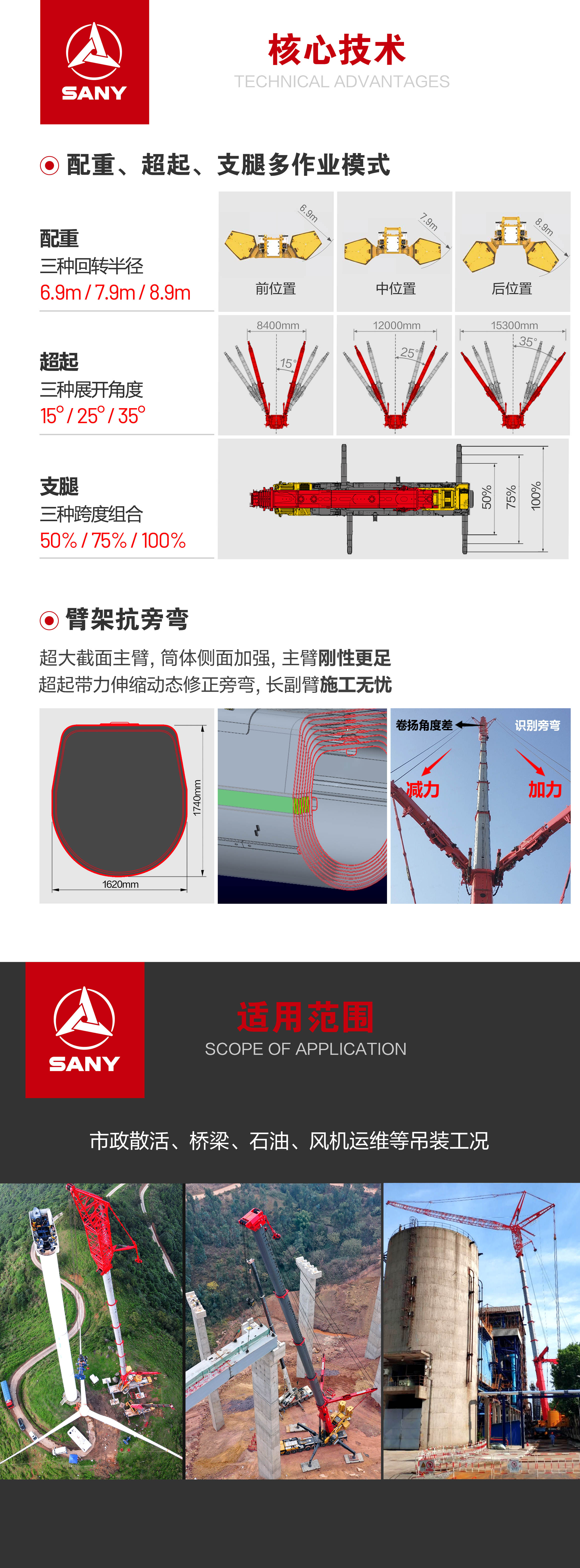 - 103m全伸主(zhu)臂吊重(zhong)29.2t,带超起吊重(zhong)54.6t。