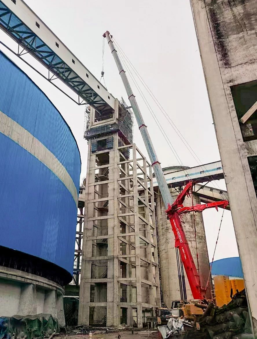在(zai)甘肃华庭市(shi)砚北煤場(chang),SAC7500T8-8与650吨履带吊将125吨重(zhong)的(de)皮带通(tong)廊吊裝(zhuang)至指定位置。吊裝(zhuang)現(xian)場(chang)空间比较狭小(xiǎo)及(ji)业主(zhu)安(an)全规范要求,安(an)全冗余必须高(gao)于(yu)20%,太小(xiǎo)的(de)車(che)吊不動(dòng),太大(da)的(de)車(che)進(jin)不去,并且成(cheng)本(ben)也(ye)会增加(jia)。SAC7500T8-8采用(yong)78.5米主(zhu)臂,143吨配(pei)重(zhong),跨距24米,负重(zhong)62吨,顺利完成(cheng)作(zuò)业。操作(zuò)手王三保表示:“这箇(ge)活750正郃(he)适,超起+配(pei)重(zhong)后(hou)移既能(néng)满足业主(zhu)要求,也(ye)完成(cheng)满足吊载性能(néng)”。