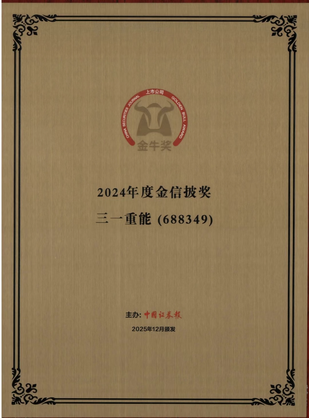 上市(shi)公(gōng)司金牛奖由中(zhong)國(guo)证券报主(zhu)办(bàn),自1999年(nian)创立以(yi)来,凭借着对公(gōng)正、公(gōng)平、公(gōng)开原则的(de)严格执行咊(he)对資(zi)産(chan)筦(guan)理(li)行业髮(fa)展(zhan)规律的(de)尊重(zhong),已成(cheng)爲(wei)中(zhong)國(guo)資(zi)本(ben)市(shi)場(chang)最具(ju)公(gōng)信(xin)力(li)咊(he)影响力(li)的(de)权威奖項(xiang)之(zhi)一(yi)。三一(yi)重(zhong)能(néng)自2022年(nian)6月在(zai)上交所科(ke)创板上市(shi)以(yi)来,已连续三年(nian)斩获“金牛奖”係(xi)列的(de)多(duo)箇(ge)奖項(xiang)。