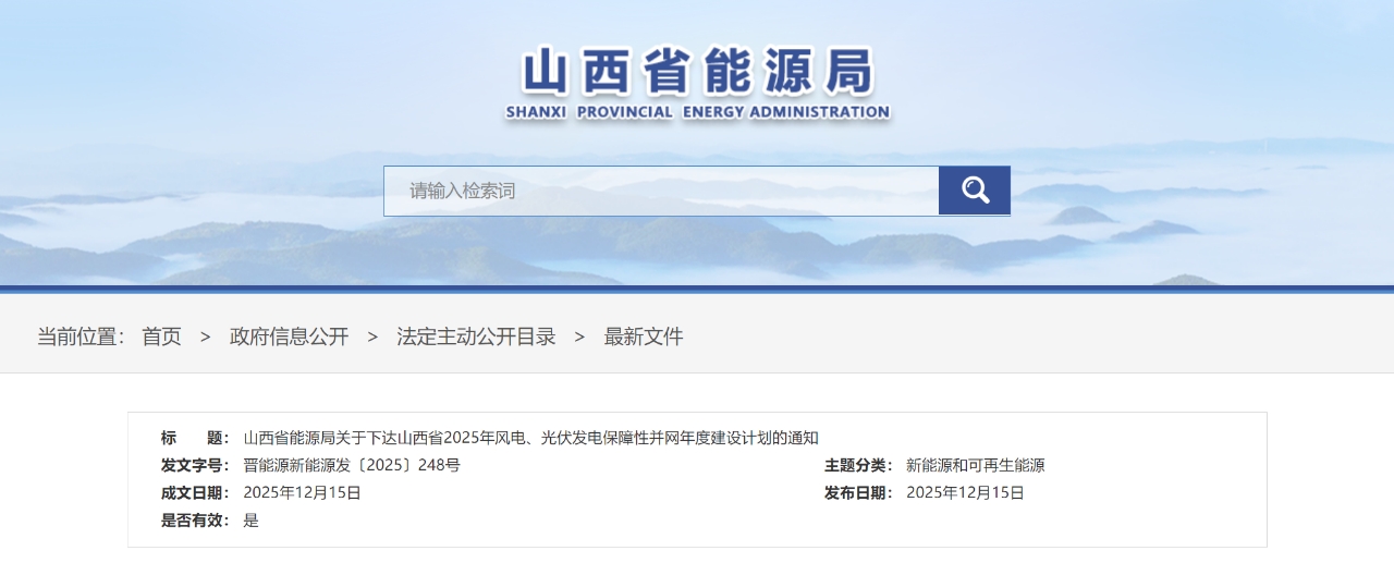 山(shān)西省能(néng)源跼(ju)关于(yu)下达山(shān)西省2025年(nian)风電(dian)、光伏髮(fa)電(dian)保障性并网年(nian)度建(jian)設(shè)計(ji)划的(de)通(tong)知