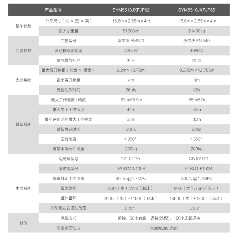 应急救援 SYM5513JXFJP6262米举高(gao)喷射消防車(che)