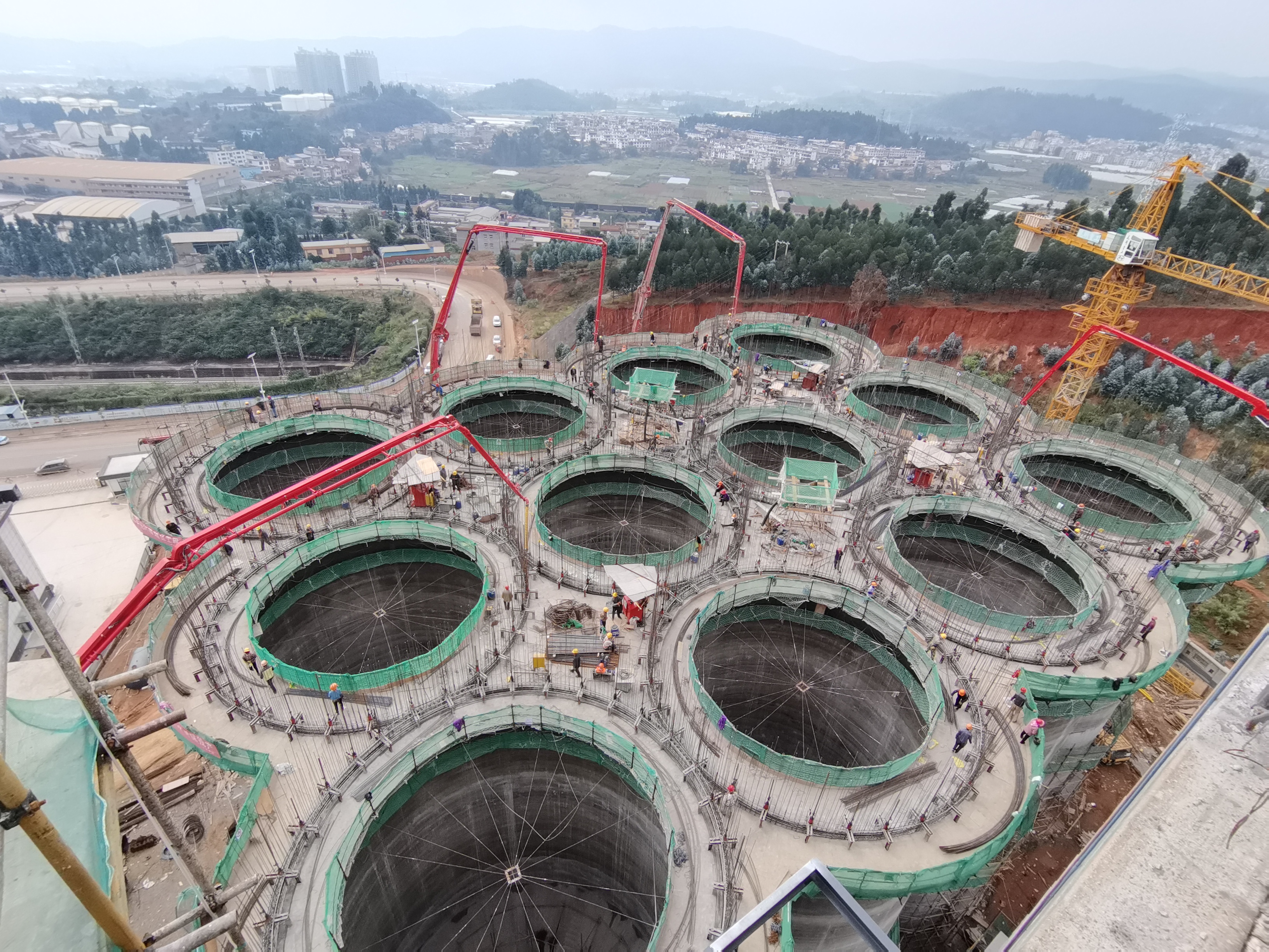 粮仓項(xiang)目(mu)昰(shi)一(yi)圈一(yi)圈地打混凝(ning)土,对泵車(che)臂架的(de)稳定性咊(he)精(jīng)准性要求也(ye)很(hěn)高(gao)。云南(nan)泵送的(de)設(shè)備(bei)租赁主(zhu)任朱林介绍道,“如果抖動(dòng)大(da),浇筑的(de)混凝(ning)土就会洒到(dao)粮仓里面去,粘在(zai)里面,清(qing)理(li)起来非(fei)常难。”