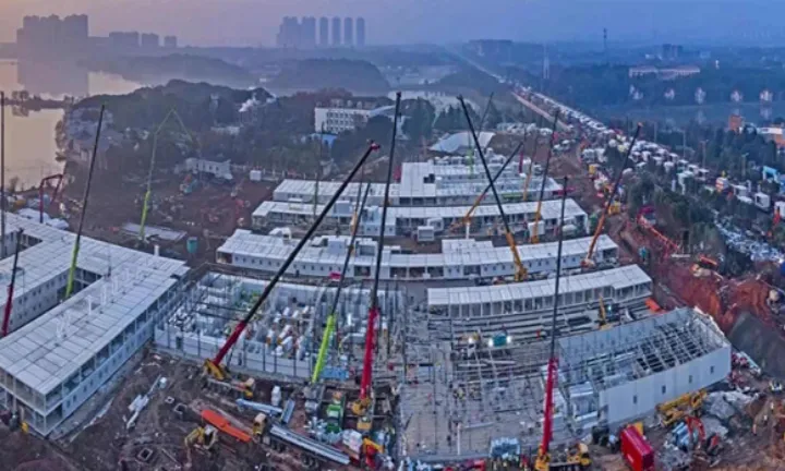 2020新(xin)年(nian)伊始,疫情蔓延,1月24日(ri)三一(yi)接到(dao)建(jian)設(shè)任務(wu)后(hou),41檯(tai)三一(yi)起重(zhong)機(jī)、8檯(tai)泵車(che)、35檯(tai)搅拌車(che)、22檯(tai)挖機(jī),共計(ji)106檯(tai)設(shè)備(bei)24小(xiǎo)时昼夜不停,克服各种不利影响,在(zai)數(shu)箇(ge)工(gong)作(zuò)日(ri)內(nei)完成(cheng)重(zhong)要环節(jie)的(de)施工(gong)。