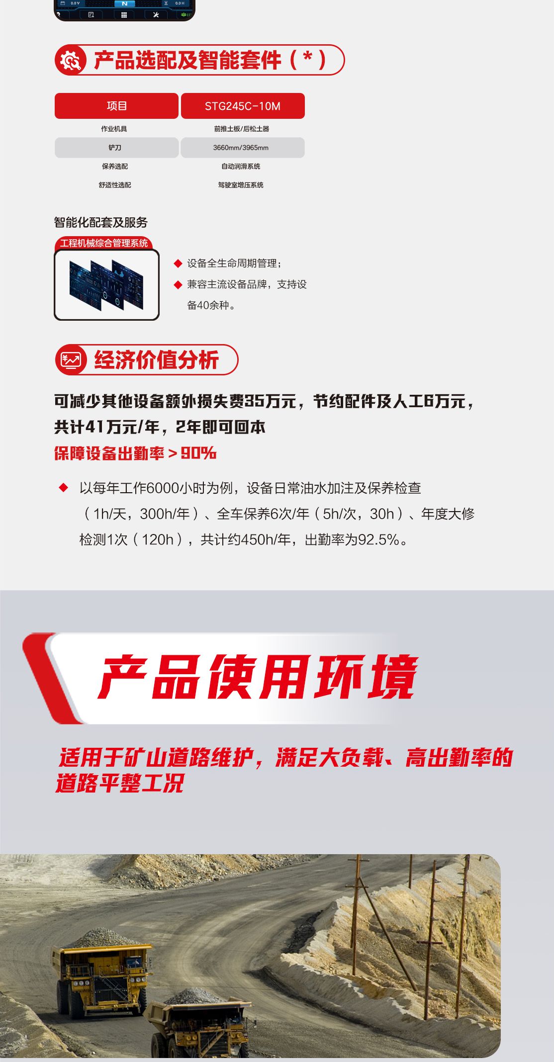矿山(shān)專(zhuan)用(yong)的(de) 245 马力(li)重(zhong)载髮(fa)動(dòng)機(jī),牵引力(li)大(da)于(yu)同类産(chan)品(pin) 10%;
