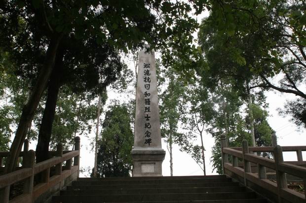 淞沪抗日和籍烈士纪念碑,始建于1933年5月,位于广东省和平县阳明镇南面塔下岗上。是为了纪念1932年参加淞沪抗日而英勇牺牲的和平县籍48名官兵。由和平县全县各界人士募捐建立。纪念碑建于山顶,南北山脚各有青砖筑成的单门双柱牌坊,山顶为宽200平方米的平台。纪念碑建于平台中央,四周围有砖砌十字花围栏。碑用青砖砌筑,表面石米批荡,四方形,基座宽2米,高10米,整体造形恰似出鞘宝剑。四面浮塑1尺见方的文字:北面为“淞沪抗日和平籍烈士纪念碑”,东面为“为民前锋”,南面为“浩气长存”,西面为“唤醒国魂”。