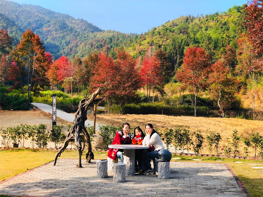 今年6月底,大楼村刚完成绿美古树乡村建设加强了古树资源保护,建设了游步道、登山道、凉亭,配备了桌凳、条石坐凳设置了导向牌、科普标识牌等,布置了自然知识科普长廊,赏枫,健身,科普,大楼村成了休闲旅游的好去处!