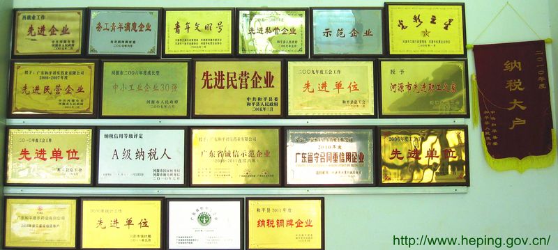 公司以创新求发展,规范管理,诚信经营,致力把企业做强,把市场做大,是获得国家药品GMP认证、计量保证体系确认合格认证、国际ISO9001:2008国际质量管理体系和ISO14001:2004环境管理体系认证的民营企业。公司曾连续多次获得“河源市守合同重信用企业”,“广东省诚信示范企业”,“全国中小企业信用服务体系建设试点示范企业”,“河源市A级纳税人”,“广东省创新型企业”和“广东省民营科技企业”等荣誉称号。