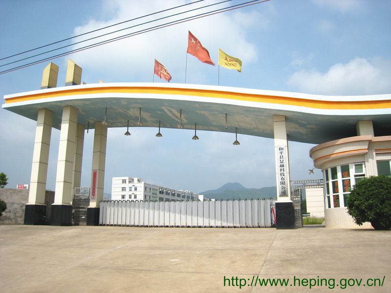 和平县显赫科技有限公司成立于2006年,位于广东省和平县福和产业转移园工业五路,是由深圳显赫科技有限公司投资兴办。公司总投资8000万元,占地面积36000平方米,一期厂房已竣工投产。