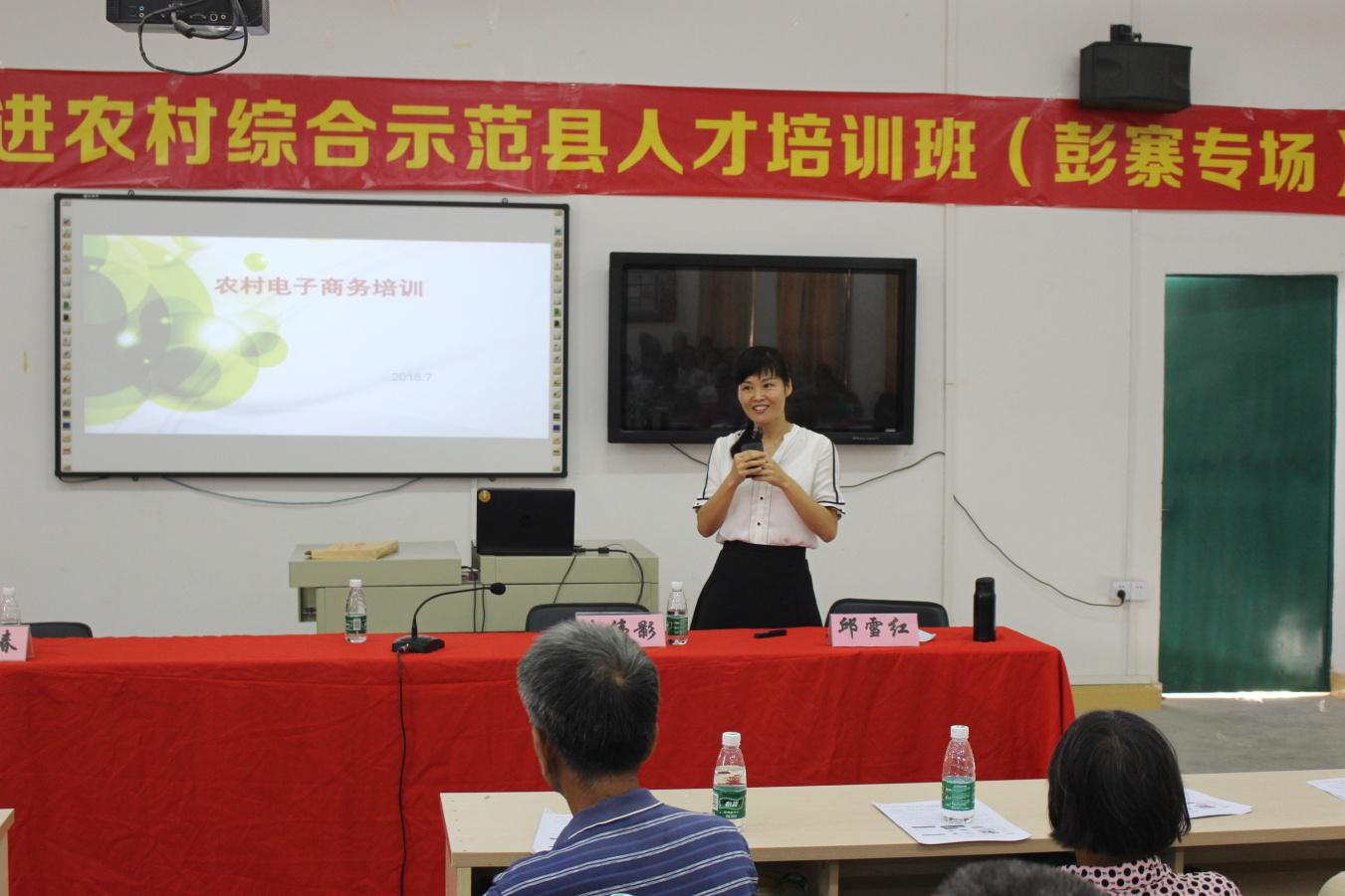 7月27日,我县省级电子商务进农村综合示范县项目电商人才培训——彭寨专场顺利举行,在17个乡镇普及电子商务人才培训活动拉开了序幕。本次培训班分上午和下午两场举行,县经商信局局长何育文、党组副书记朱伟影,彭寨镇人大主任梁新春、党委委员曹锦步出席了培训班。