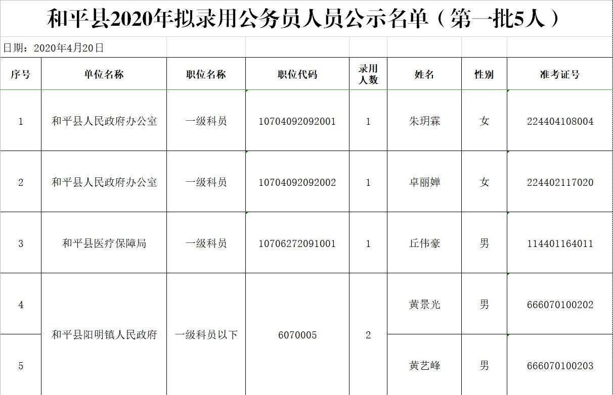 附件:和平县2020年拟录用公务员人员公示名单(第一批5人).jpg