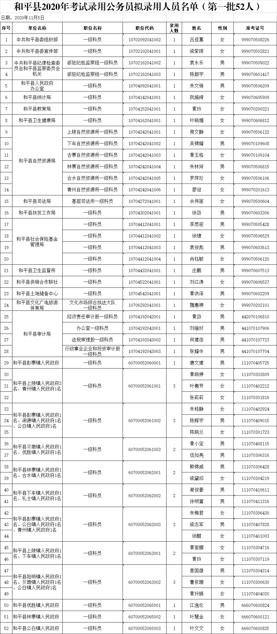 附件:和平县2020年考试录用公务员拟录用人员名单(第一批52人).jpg