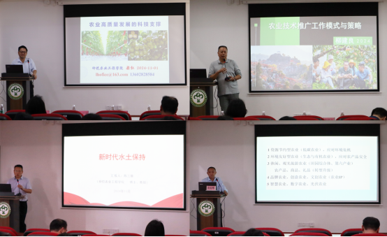 培训班上,园艺园林学院梁红教授、柳建良教授、陈三雄教授、周俊辉教授分别以《农业高质量发展的科技支撑》、《农业技术推广工作模式与策略》、《新时代水土保持》和《数字农业与智慧农业》为题做了现场主旨报告。授课教师从现代农业科技发展趋势、农业新质生产力、农业科技项目管理、农业科技成果推广等方面,为学员们进行了深入浅出的分析,培训会场气氛十分热烈。会后,学员们到马岭观花植物园进行产业调研,了解文旅融合、花卉苗木等行业科技发展需求及农业企业的现代化管理理念。