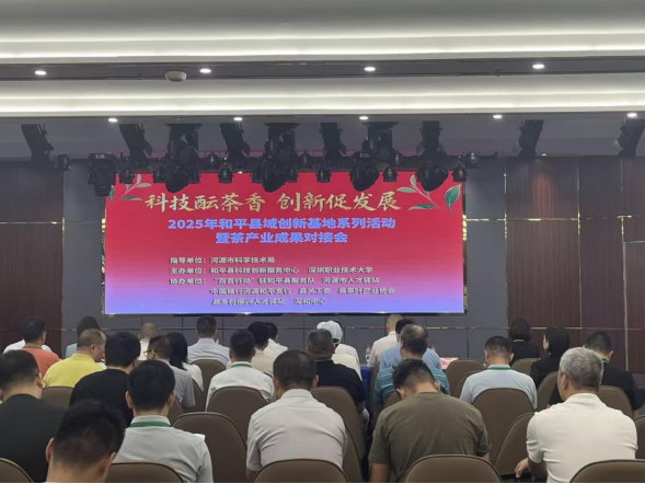9月29日上午,2025年和平县域创新基地系列活动暨茶产业成果对接会在深和中心C栋2楼隆重举行。本次活动以“科技酝茶香 创新促发展”为主题,汇聚市、县两级政府部门代表、深圳职业技术大学专家团队、金融机构、茶产业协会及茶企茶农代表等70余人,通过成果展示、签约合作、政策解读等形式,全面呈现和平县域创新基地茶产业发展成效,为和平茶产业高质量发展注入新动能。