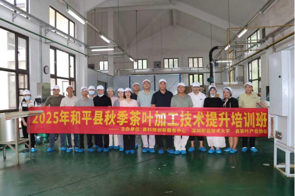 深入贯彻落实省委“1310”具体部署,紧密围绕《广东省“百县千镇万村高质量发展工程”县域创新基地(河源市和平县)》项目目标,着力破解我县茶叶产业加工环节标准化程度不高、产品附加值有待提升等关键问题,切实以科技创新驱动产业升级,促进茶农稳定增收与乡村产业振兴,在县委县政府的指导下,和平县科技创新服务中心(以下简称“县科创中心”)主动作为,组织深圳职业技术大学(以下简称“深职大”)专家团队及县茶叶产业协会,于2025年9月19日在和平县热水镇同湖月茶场成功举办了“2025年和平县秋季茶叶加工技术提升培训班”。
